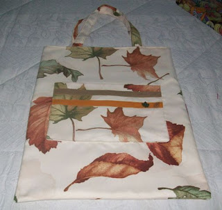 Saco de compras em tecido com estampa bem da época. Adoro as cores de outono, ainda que a minha cor preferida seja o azul. Adoooooro azul, até a palavra é bonita.